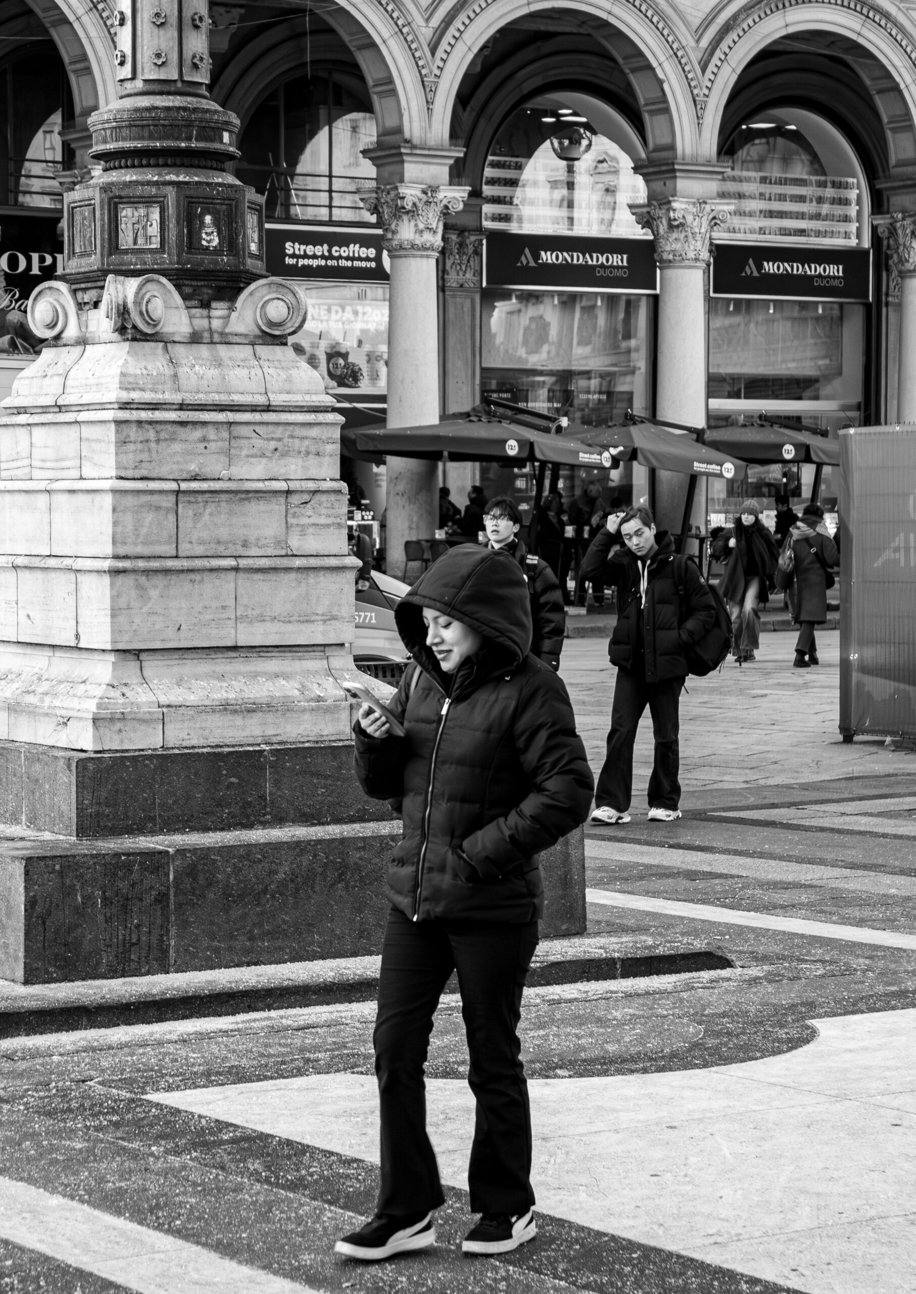 Milano in bianco e nero non è una città, è un ritmo visivo fatto di contrasti netti, dove il grigio non è mai un colore spento, ma una scala infinita di sfumature tra il marmo e l’asfalto.
